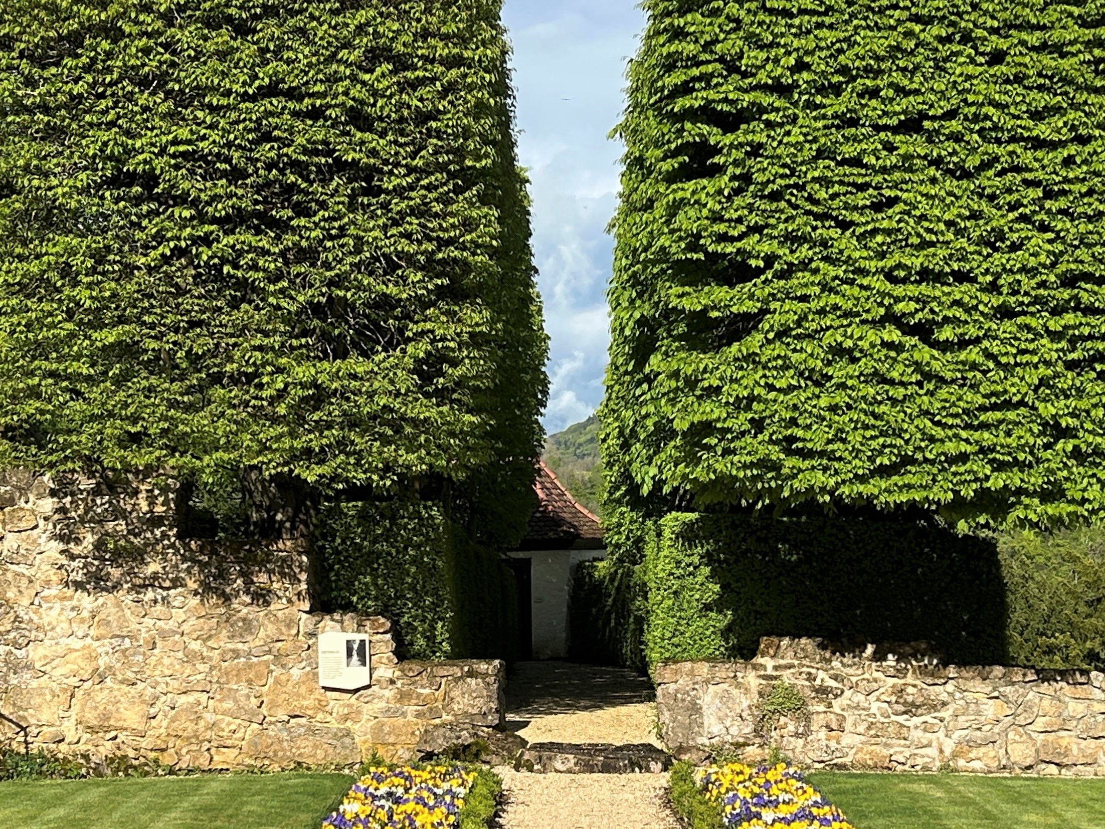 Auch die Hecke aus immergrünem Buchs (Buxus sempervirens) ist sehr alt und im Verlaufe der Zeit zu hoch gewachsen für den ungehinderten Ausblick aufs Aaretal. Um das während Jahrhunderten entstandene Mikroklima zwischen den Bäumen und der Hecke nicht zu gefährden, wurde aber auf ein Zurückschneiden der Hecke verzichtet.